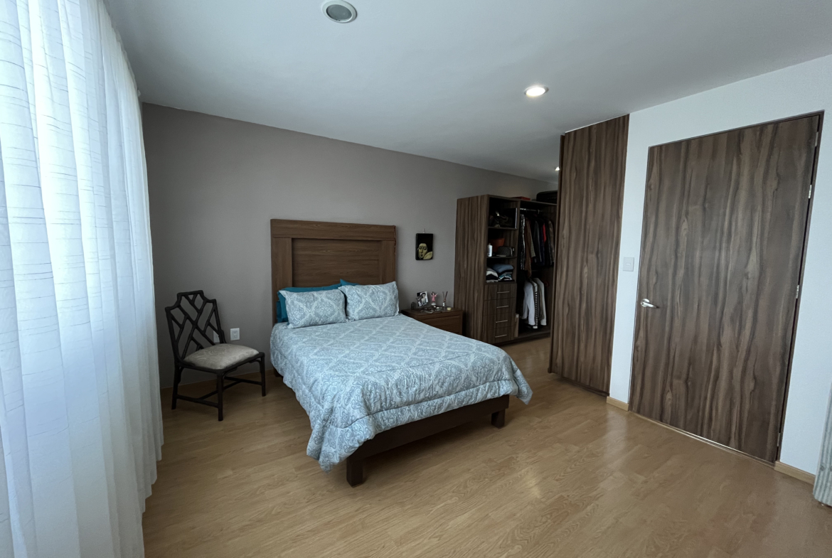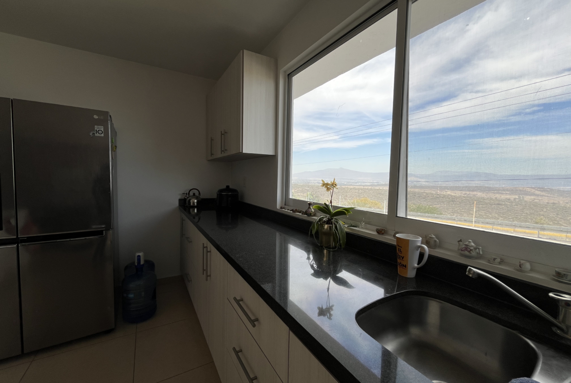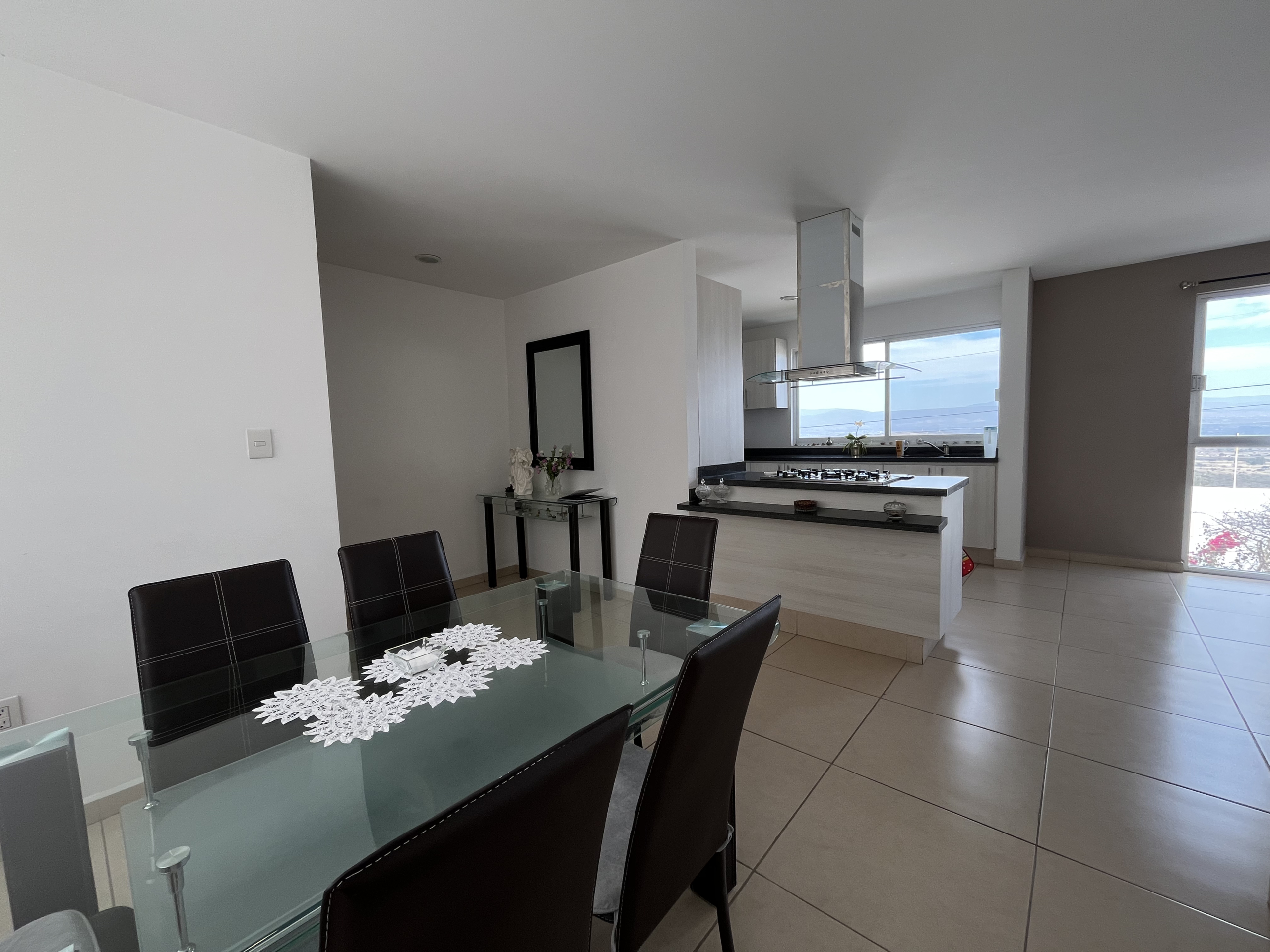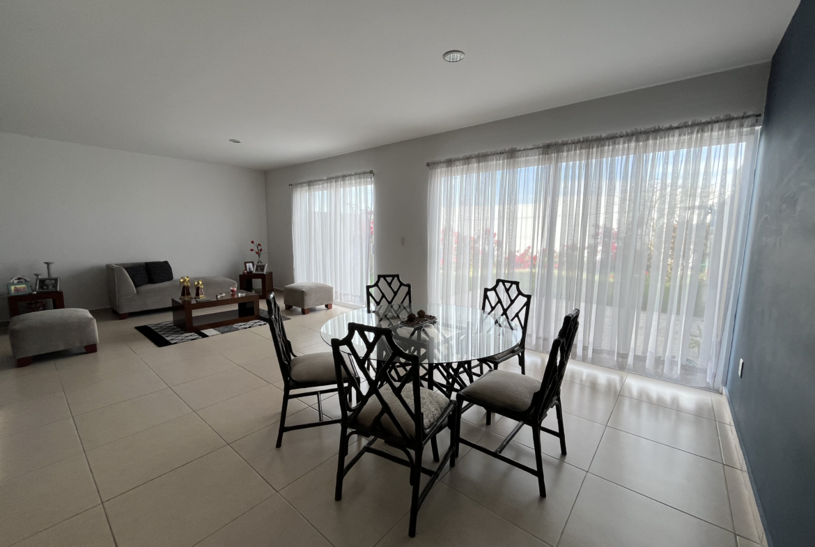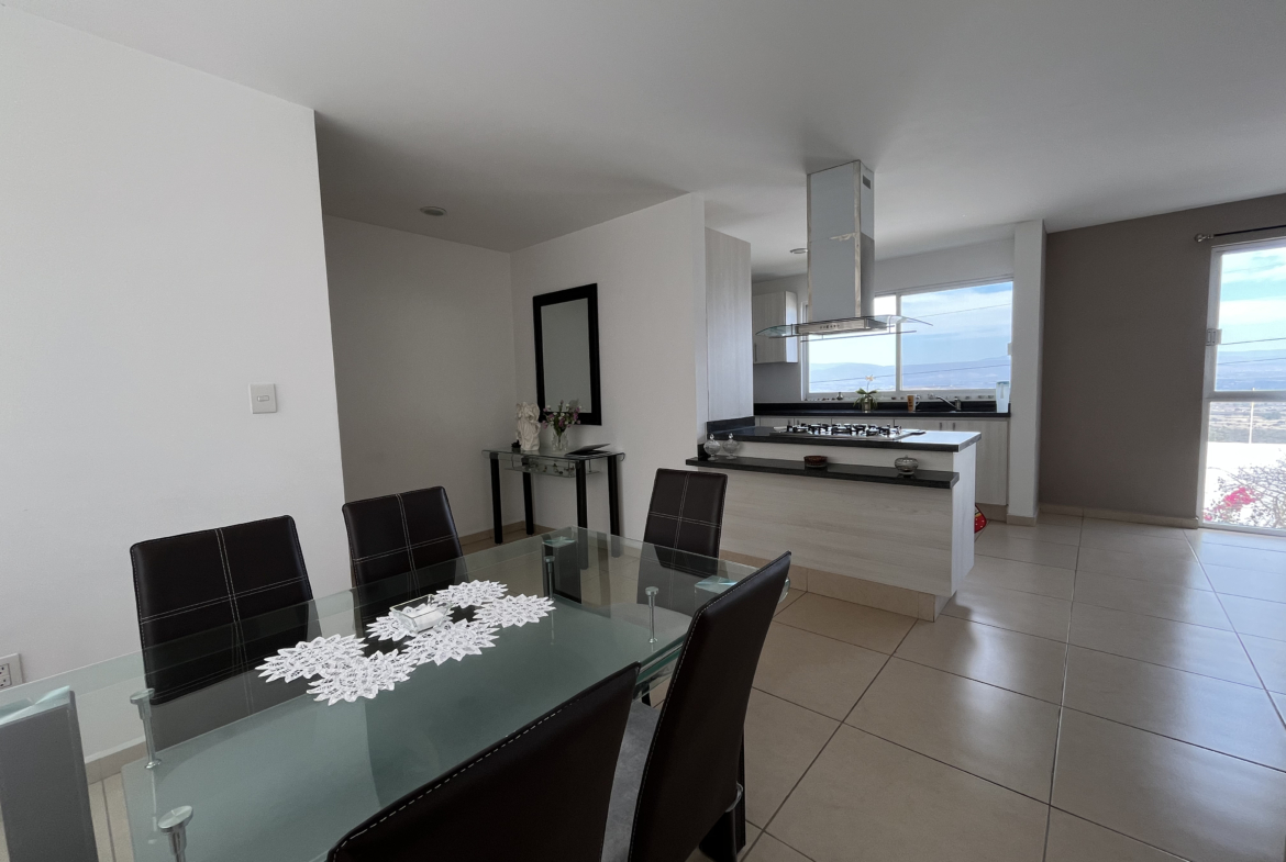 Casa de tres niveles con excelente iluminación, distribución funcional y un jardín trasero de más de 80 m². Ubicada a un costado de la Universidad Anáhuac, esta propiedad destaca por sus vistas abiertas al Valle de Chichimequillas, su amplitud interior y la privacidad que ofrece en cada área. Ideal para familias que buscan comodidad, buena ubicación y un entorno residencial seguro.