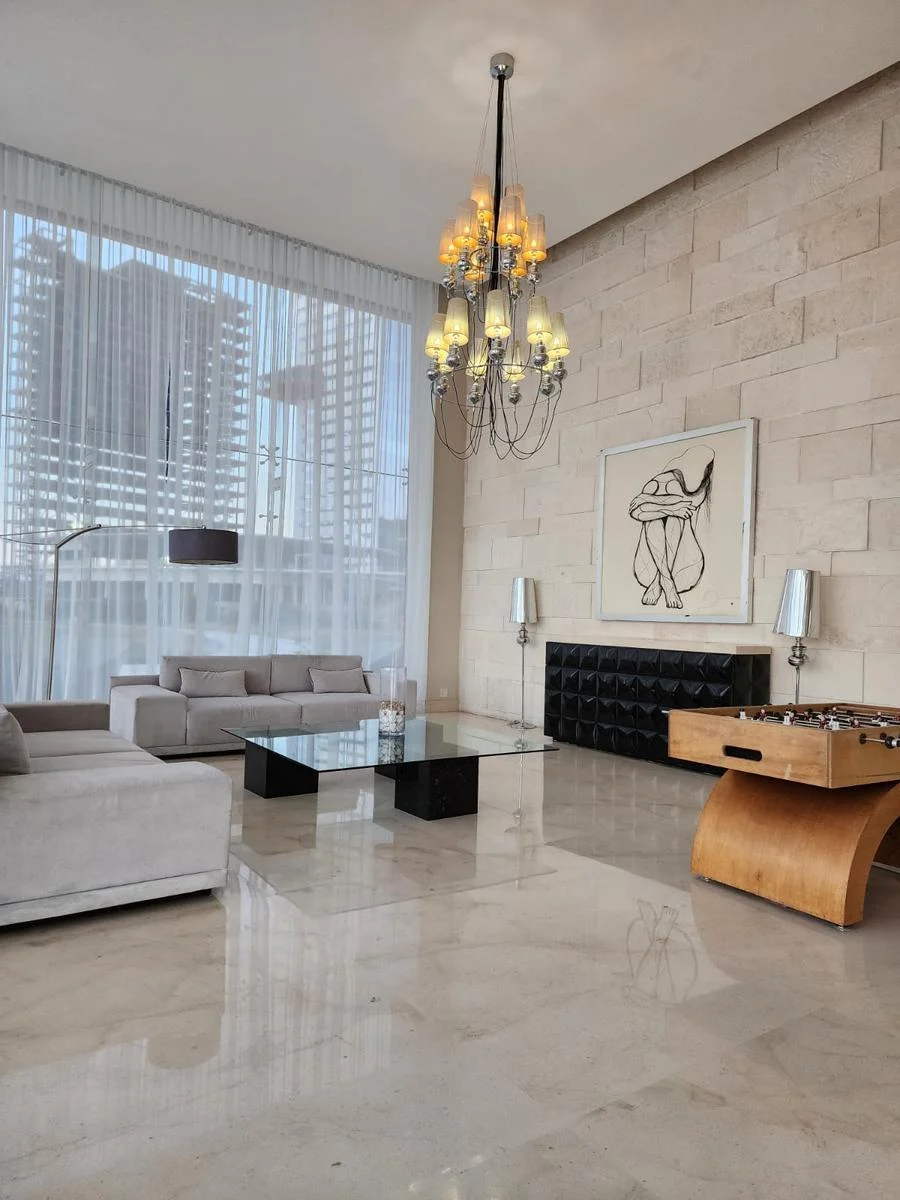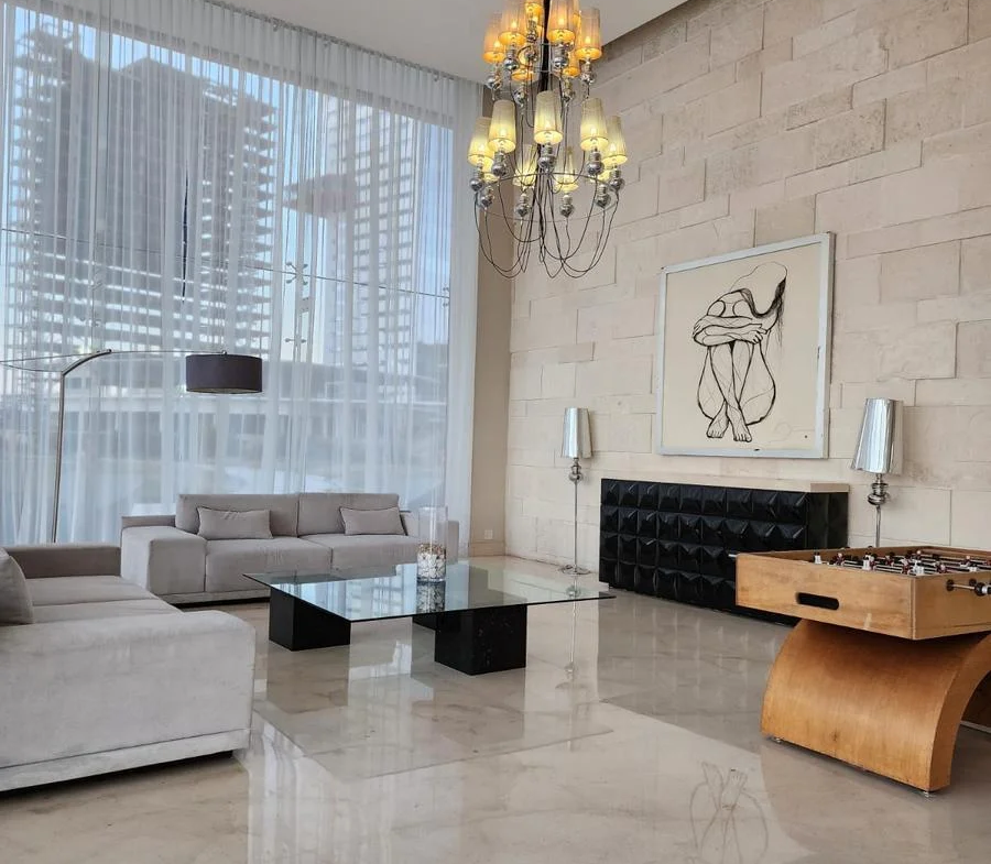 Departamento sin amueblar de 250 m² con una de las mejores vistas a la ciudad. Cuenta con 3 recámaras, 3 baños completos, cuarto de servicio con baño, cocina equipada con lavavajillas, aire acondicionado y amplios espacios interiores.