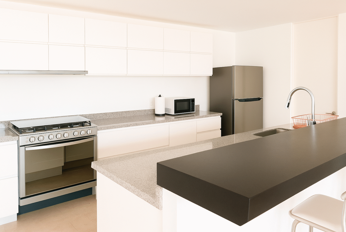 - Refrigerador, lavavajillas, microondas, horno grande y hornito