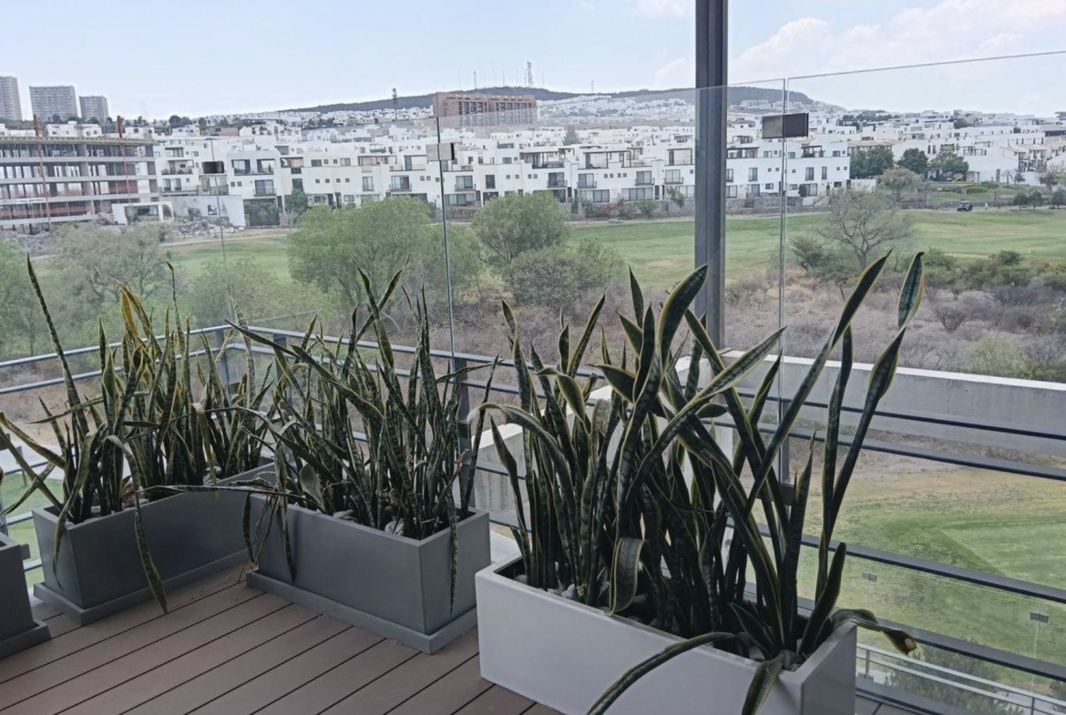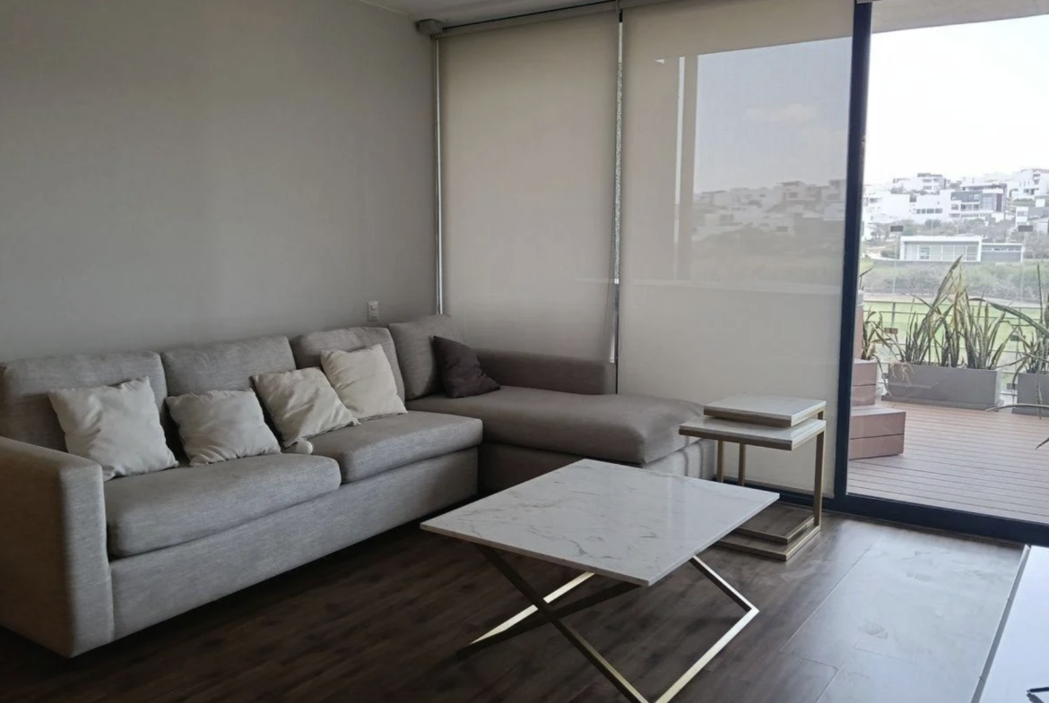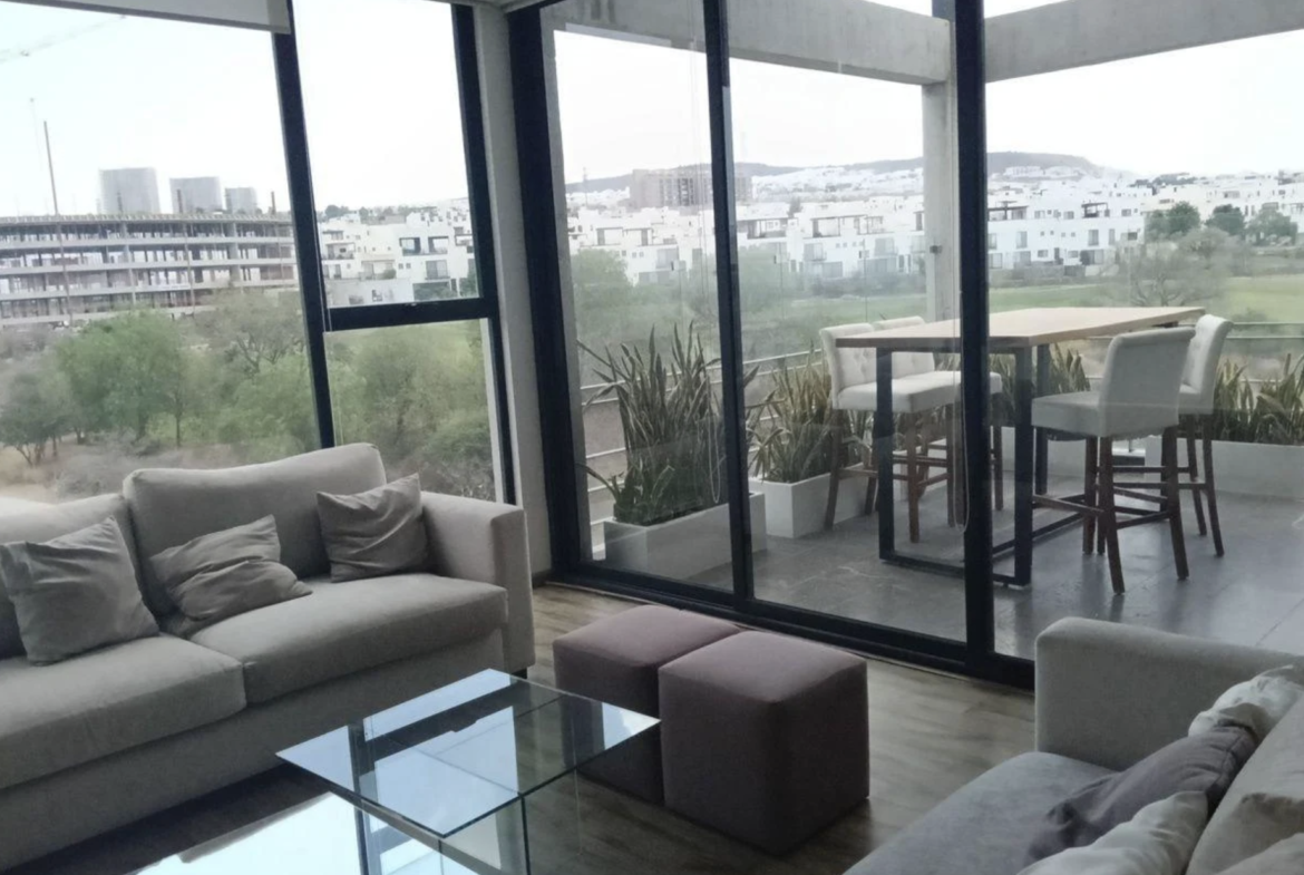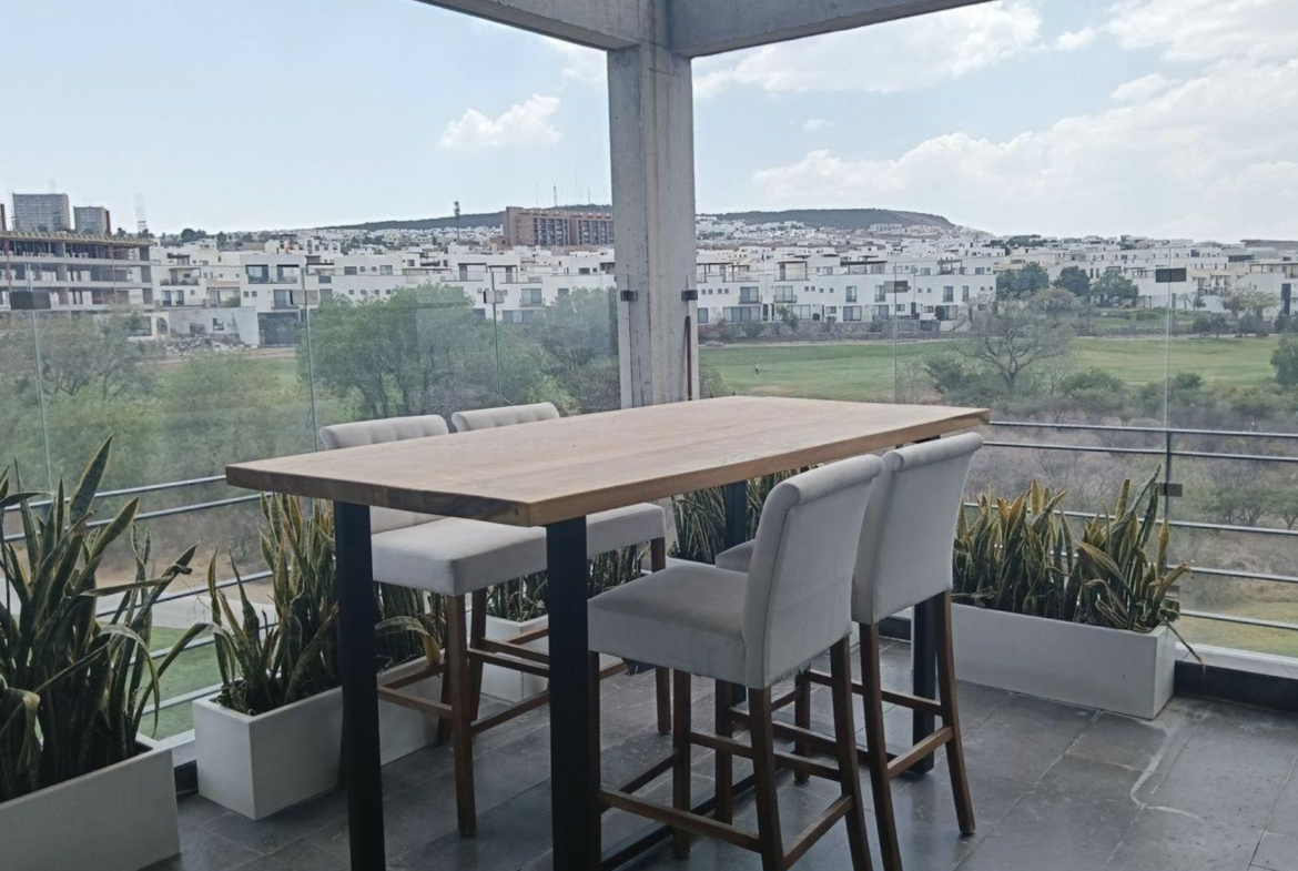 Penthouse de dos niveles totalmente amueblado, con amplias terrazas y vista directa al campo de golf. Espacios modernos, acabados premium y privacidad total.