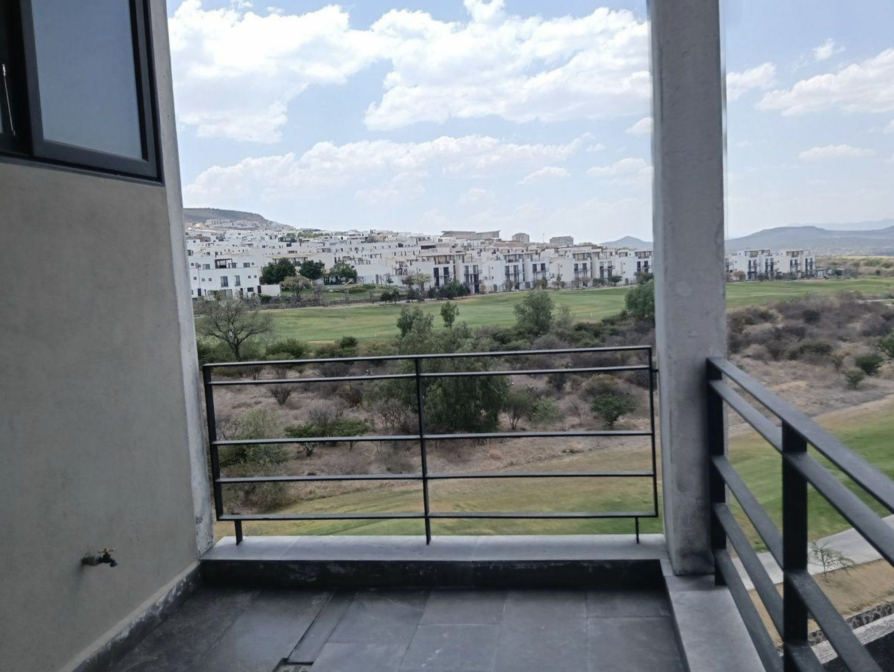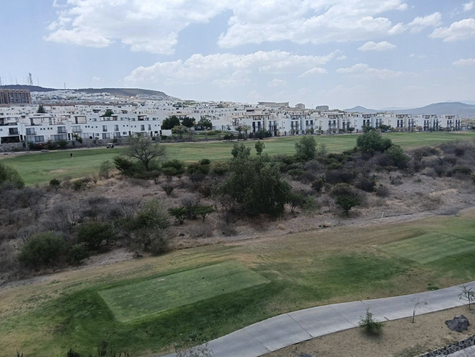 Recámara con terraza y baño, sala comedor, cocina equipada, terraza con vista al golf, baño de visitas, cuarto de lavado, bodega.